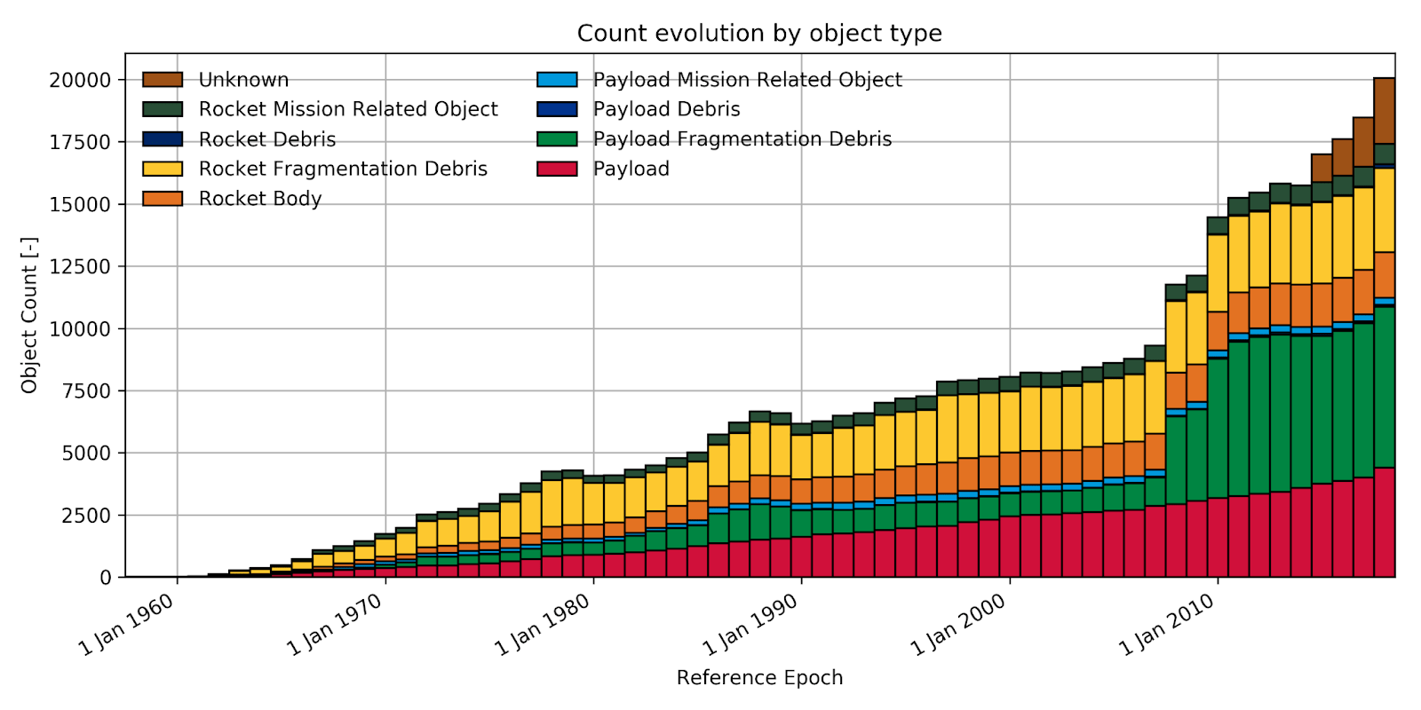 Listed below are some debris categories including a graph on how they compare in numbers up in orbit since 1957: